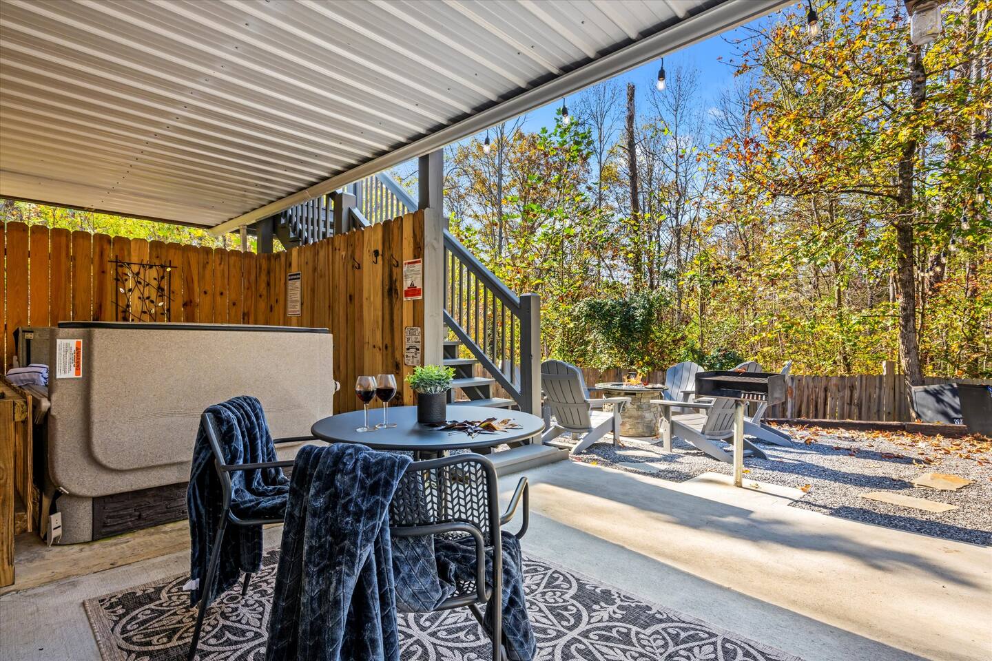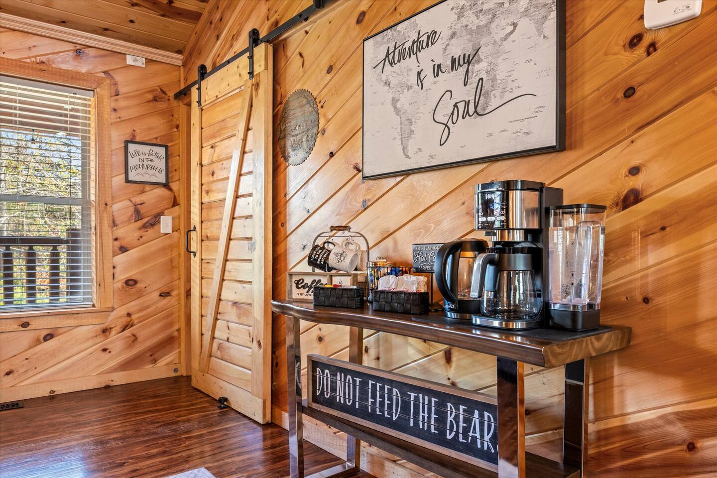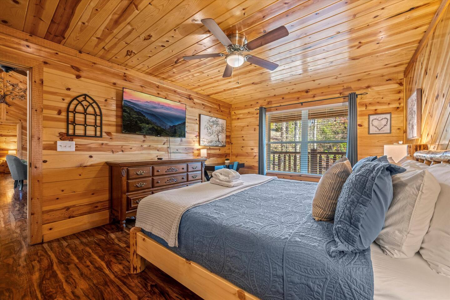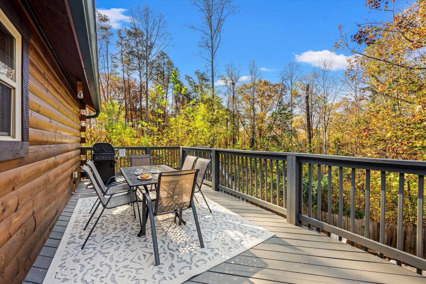 We do have a security camera on the back deck that faces the parking area, and a Ring doorbell on the front door. These are for your safety and the security of the property. From the parking area behind the cabin, there are stairs to the entrance off the back deck. NEARBY ATTRACTIONS: - Dollywood: 11 miles - Gatlinburg: 17 miles - The Island in Pigeon Forge: 8 miles - Hatfield & McCoy Dinner Show: 7 miles - Downtown Sevierville: 6 miles - And soooo much more!
