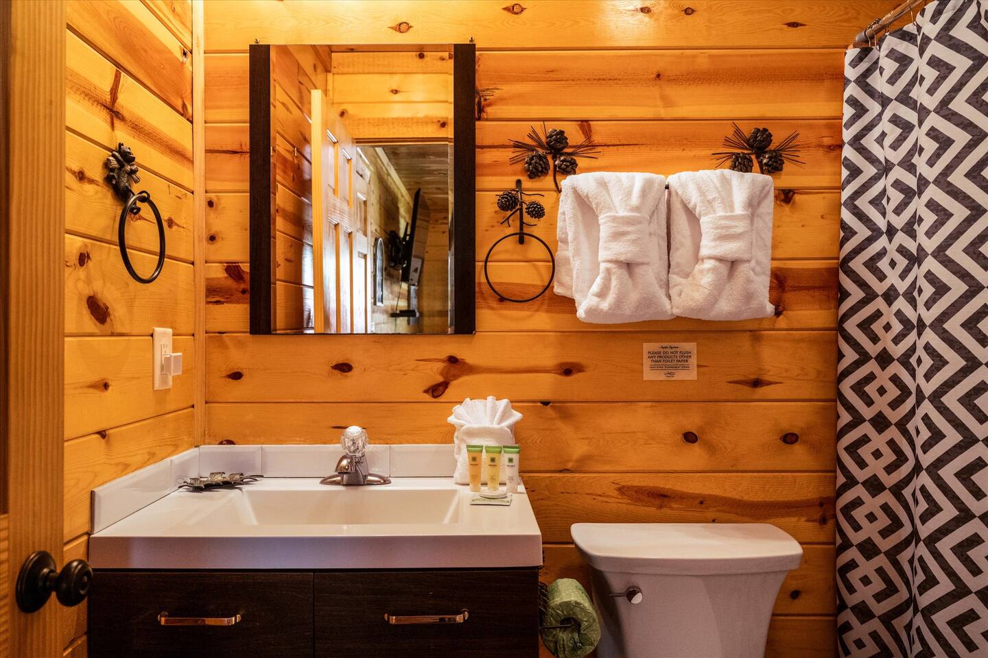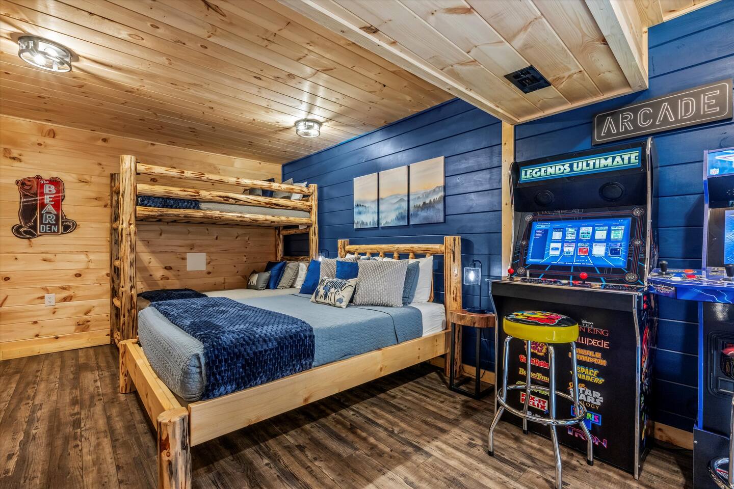 PROPERTY HIGHTLIGHTS: • Bedrooms & Baths: 4 elegant bedrooms and 3 full baths. • Entertainment Galore: Enjoy our basement arcade room, modern theater, and a newly installed pool table – perfect for game nights! • Gourmet Coffee Bar: Indulge in freshly brewed coffee each morning with a variety of blends and creamers as well as tea & hot cocoa. • Relaxation Stations: Unwind in the bubbling hot tub or gather 'round the outdoor fire pit under the stars (s'mores provided!). • Spacious Outdoor Areas: The serene front porch and expansive back deck—with dining table & gas grill—offer breathtaking woodland views. OUR GUESTS LOVE OUR CABIN! ★★★★★ "It's a beautiful place to stay we felt like at home and had everything we needed for all of our family, our kids loved it and wanted to stay there all day!" ★★★★★ "The cabin was VERY clean, and SO beautiful! I would definitely recommend her cabin to anyone!" ★★★★★ "Michelle is the absolute BEST host and goes above and beyond to make your visit perfect. Her home is absolutely beautiful and had everything our family could ask for." ★★★★★"Can Michelle be our AirBnB host for life? Seriously, by far the most responsive, helpful host that we’ve ever had." ADDITIONAL FEATURES • Comfortable Living Space: Cozy up around the fireplace in our "great room" living space equipped with a 65" Roku Smart TV, perfect for movie nights and casual gatherings. • Modern Kitchen: Cook and dine in style with stainless steel appliances and a spacious island, fully equipped for chefs & families. • Newly Remodeled: Our new basement features a large 4th bedroom with queen bed, twin bunk bed, & arcade games, a game room with pool table, and a cinema room with recliners, LED lighting and a 65" Roku TV. We just added a 3rd bathroom in the basement too, with tiled shower • Convenient Location: Dollywood, The Island, Dinner Shows, Gatlinburg, Tanger Outlet Mall, 100s of Restaurants & Family Attractions are all within a short drive! Easy roads (no steep scary roads to get here!) • Secure and Accessible: Easy check-in with a private key code, plus ample parking that avoids steep roads. Our responsive host is dedicated to making your stay exceptional, providing 5 star service. Whether you're planning your next family reunion or a quiet retreat, Smoky Mountain Sanctuary is your ticket to a memorable stay. POLICIES: • No smoking or vaping. • No pets or unauthorized guests. • Must be 25+ to book. • Strictly no events or parties. • We have a security deposit that is just a hold ($500) on your credit card, NOT a charge. it is released within 3 days or less after your stay, as soon as the cleaners come. We've never had to change a guest against their security hold. :) • Only registered guests allowed on the property at any time, day or night. Book your unforgettable stay at Smoky Mountain Sanctuary today and immerse yourself in the beauty and thrilling adventures of the Smoky Mountains!